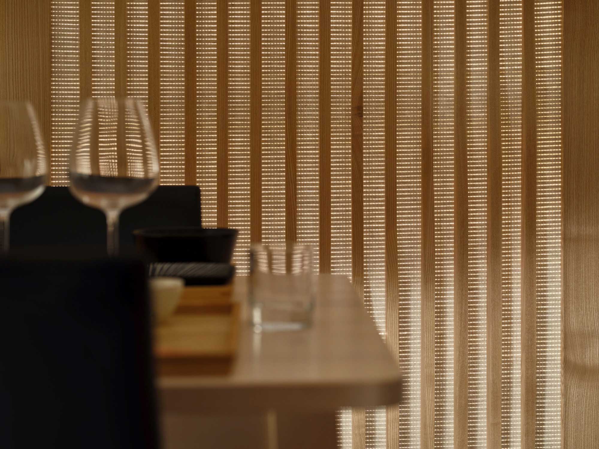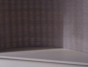 folding screen hand woven, cotton, wool and optical fibre, ash wood. co-created with artisan designer Vincent Crinière. 142 x 202 cm